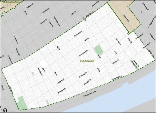 The boundaries of the Irish Channel are fluid and contentious. The term Irish Channel didn’t even appear in print until after the Civil War, closer to the turn of the century. For the purposes of this map, we decided to go with the city’s historic district boundaries (find more about their criteria here).
